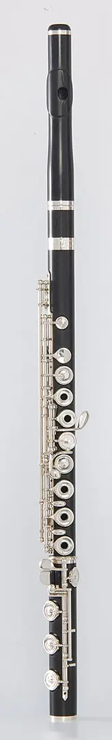 Die handgearbeitete Silberflöte mit aufgelöteten Tonlochkaminen ist auch mit H-Fuß und in Linie verfügbar. Individuelle Kopf- und Mundlochformen variieren Klangbild und Ansprache.